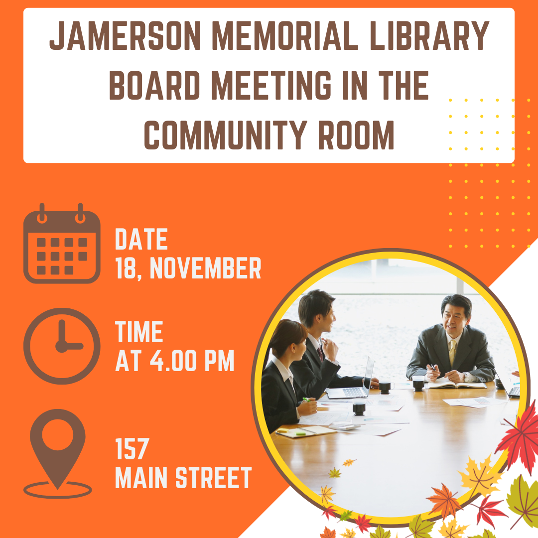 Nov 18 2025 Library Board to meet at the J. Robert Jamerson Memorial Library J. Robert Jamerson Memorial Library
